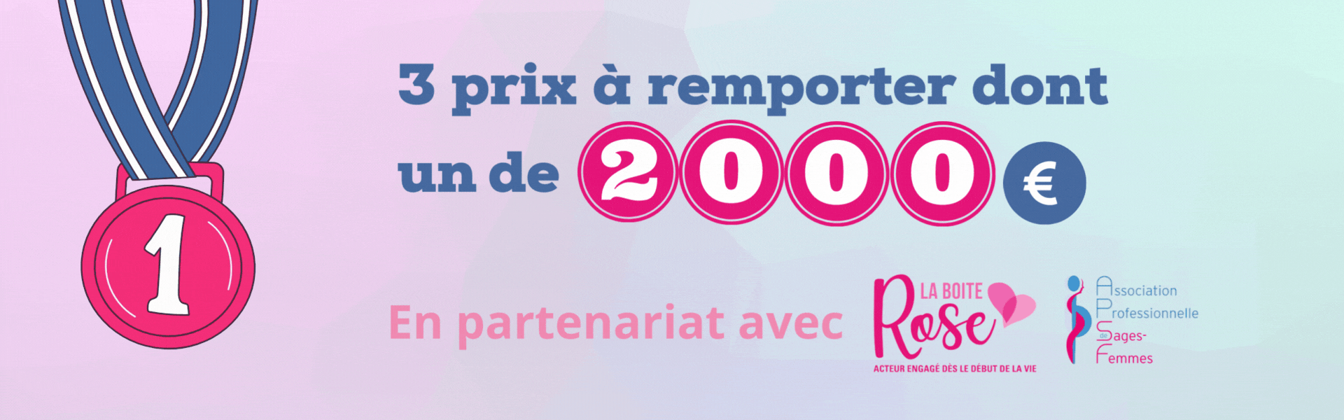 - Le 2ème prix, le Prix spécial des Assises Nationales des Sages-Femmes de 1000€, remis par le Comité scientifique des Assises Nationales des Sages-Femmes en partenariat avec la société La Boite Rose